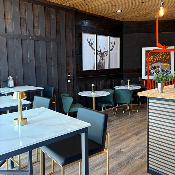 A bright, flexible space great for casual events, meetings, or small celebrations, with coffee, espresso drinks, pastries, and light bites available for your guests.